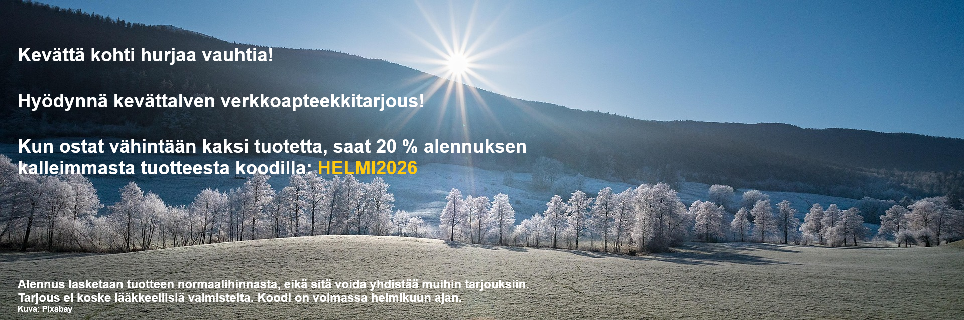 Apteekkimme verkkopalvelusta voit hankkia resepti- ja itsehoitolääkkeitä sekä ei lääkkeellisiä tuotteita. Reseptilääkkeet ovat kaikissa suomalaisissa apteekeissa ja verkkoapteekeissa samanhintaisia. Itsehoitolääkkeiden ja ei lääkkeellisten tuotteiden hinnat vaihtelevat.