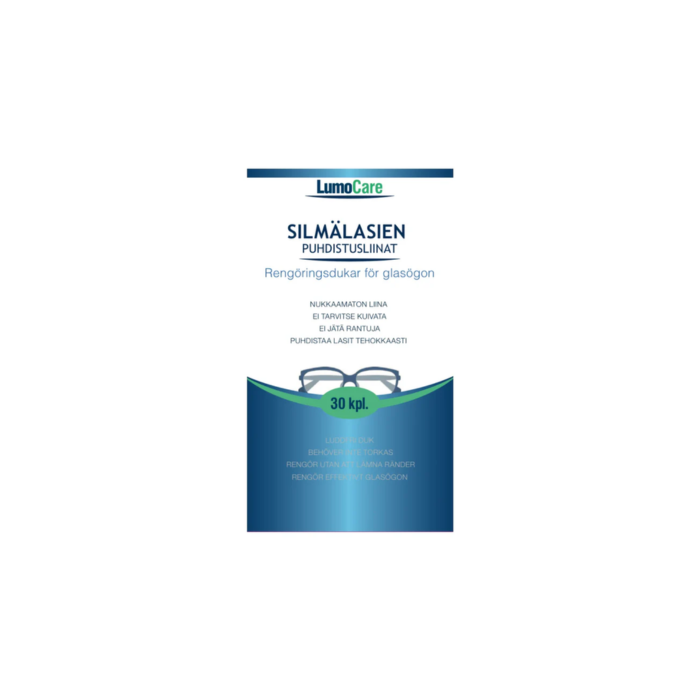Valmiiksi kostutetuilla silmälasien puhdistusliinoilla puhdistat silmälasit helposti ja turvallisesti. Soveltuu mm. silmälaseille, aurinkolaseille ja kameran linssille. Nukkaamaton eikä jätä kuivuessaan rantuja. Ei tarvitse erikseen kuivata