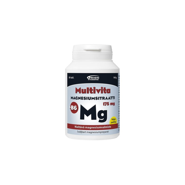 Vahva Multivita Magnesiumsitaatti+B6 175 mg on urheilijan ja kuntoilijan luottotuote! Yksi nieltävä tablettti sisältää 175mg hyvin imeytyvää magnesiumsitraattia sekä 2 mg magnesiumin imeytymistä tehostavaa B6-vitamiinia. Tabletti on tarvittaessa helppo puolittaa. Magnesium vähentää väsymystä ja uupumusta, edistää energia-aineenvaihduntaa ja tukee lihasten ja hermoston normaalia toimintaa sekä auttaa edistää fyysisestä rasituksesta palautumista. Ravintolisä.
