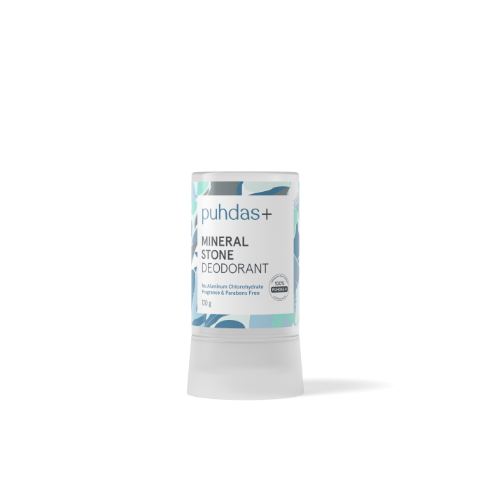 Puhdas+ Mineral Stone Deodorant är ett modernt och ekologiskt val mot dofter. Produkten passar för känslig hud och ger långvarig fräschör. Produkten är doftfri, alkoholfri, färgämnesfri och konserveringsmedelsfri mineralsten och den innehåller inga aluminiumsalter. Produkten är behaglig att använda och fläckar inte kläder.